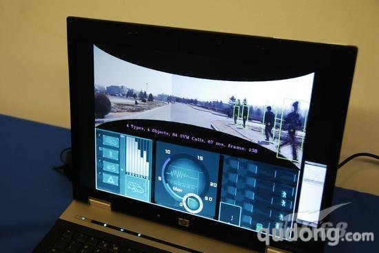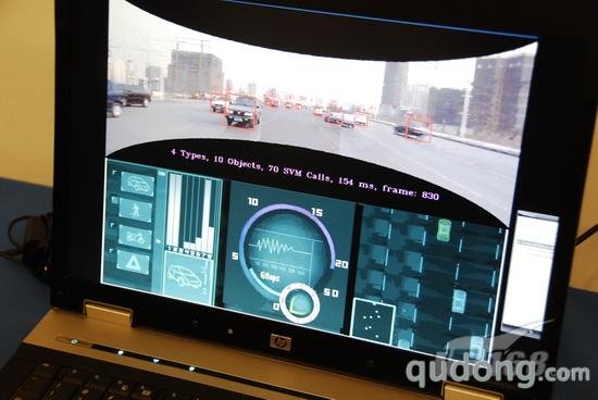 由东软和英特尔开发的新一代汽车仪表导航系统,通过汽车前面和后面的6个摄像头,捕捉周边车、人、物、交通标识等信息,处理后反馈给驾驶员