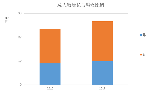 市场的庞大代表着人们对医美行业的认可度越来越高,具体表现在已经有越来越多的人愿意主动分享自己的医美经历。据《2017新浪微整形年度大数据报告》显示,关注医疗美容的群体总人数已超过2678万,同比去年增加了13.57%,相比于增长缓慢的男性群体,女性群体占比则提升了17.1%。