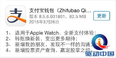 下面是支付宝钱包针对Apple Watch作出的更新内容。