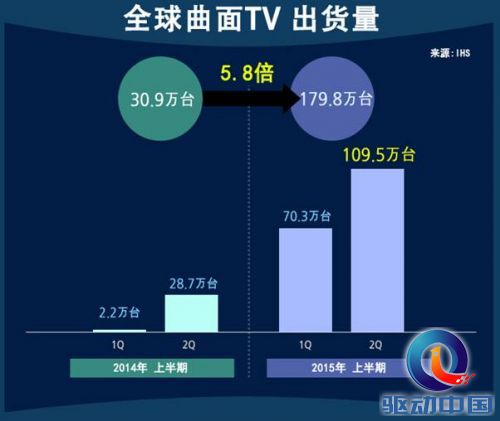 根据市场调查机构IHS统计,今年第二季度全球曲面电视的销售量达109万4700台,季度销售量首次突破100万台大关。上半年销售量累积达179万7600台,同比增长5.8倍。去年年销售167万6000的曲面电视市场,今年有望达到524万6000台,继今年的增长势头,预计明年能达到773万4000台。