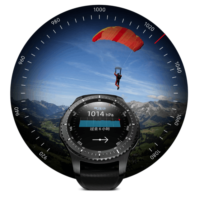 GearS3支持多种运动自动识别监测功能,带上手表即可识别当前的运动种类,省去了调节手表模式的时间,对于"时间就是金钱"的高效率精英人士来说,是最好不过的功能吧。同时,GearS3通过了IP68级防尘防水认证,并具备气压计、高度计等对户外运动友善的新功能,这些功能配备兼顾了各种运动方式的需求,尽量减少运动过程中的人机交互,并且可以随时记录下你想要记录的运动数据,而当你进行户外运动时,内置的GPS和格洛纳斯全球卫星导航系统还可以实时勘测你的高度、速度,气压计则可显示大气压的变化,确认气象动态,帮助你提前躲避风雨。