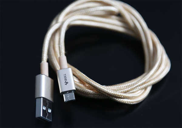 公牛安卓尼龙编织数据线就是这为数不多中的一个,不论是颜值,还是做工以及性能都是当下安卓数据线中的佼佼者。公牛安卓尼龙编织数据线表面看起来金光灿灿,实则缘于外表采用180编细密编织工艺的有光丝尼龙材料,并且经过抛光处理后,质地绵密光泽亮丽,手感舒适韧性上佳。长期使用也不易起毛,抗弯折能力也十分靠谱。