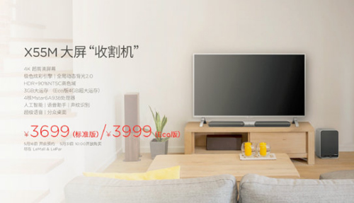 55吋超4 X55S,在延续原有超4 X55的Mstar6A938处理器、32GB闪存、HDR、MEMC、Harmam/Kardon认证音响系统等基础上,升级配置采用的4GB超大运存,画质升级为极色炫彩画质引擎,并采用最新的EUI6.0 TV Greyhound操作系统。超4 X55M将于5月16日开启预约,5月31日10点LeMall/LePar同步开放购买。超4 X55S将于5月16日开启预约,5月31日10点LeMall/LePar同步开放购买。