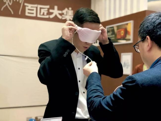 陈利军还针对人体最易受寒的几个部位,打造了护膝、护腰和护颈等产品,以加速血液循环的方式来提高人体的新陈代谢率,使身体含氧量增加,让皮肤的寒湿气顺利疏解出去,吴老师还当场试用了一下石墨烯眼罩和护颈。