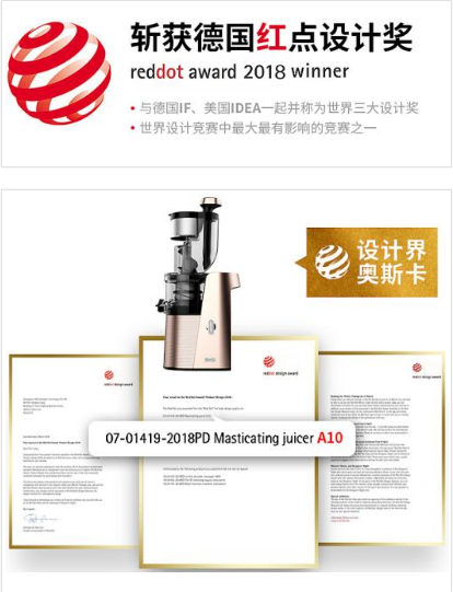 SKG原汁机A10获2018红点奖