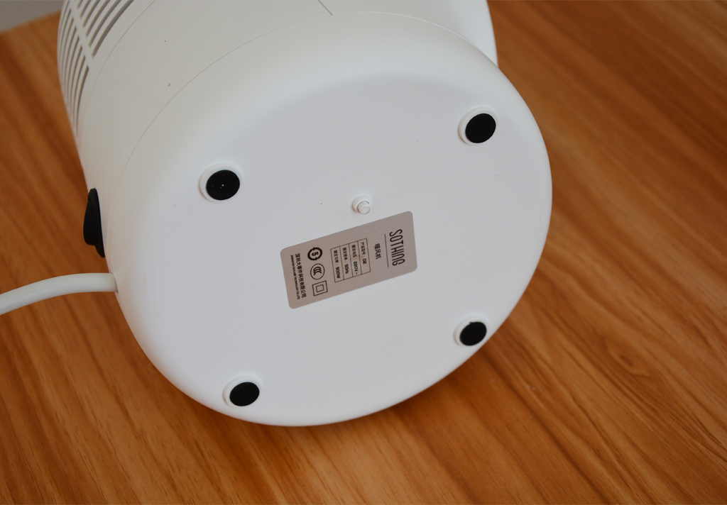 对于底部,Sothing呆呆个人暖风机有四颗防滑胶垫,中间有一个安全开关。