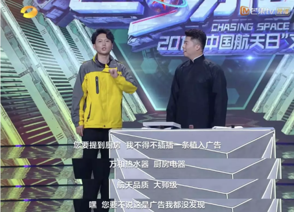 “2019中国航天日文艺晚会”是中国航天业这种“硬核技术”圈与中国娱乐综艺行业的一次重要的“跨界”,并且时机刚刚好:从活动之初,人类历史上第一张黑洞照片,以及歌手华晨宇以“火星人华晨宇给你发来一个邀请”,成功实现了跨圈层的连锁传播效应,成功引起了大众用户的聚焦效果与自发参与。晚会当天的诸多演艺活动,更是紧密贴合了“航天”理念,比如德云社当红小生的相声《如果没有航天,我们的生活会怎么样?》,通过不断的“抖包袱”,甩出一个个航天技术应用到普通百姓生活日用品中的生动例子,实现了万和产品的“无痕”植入。