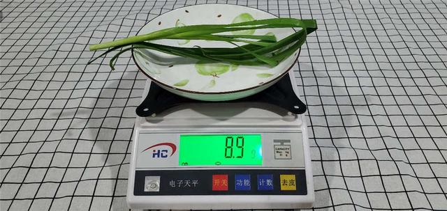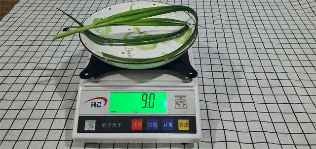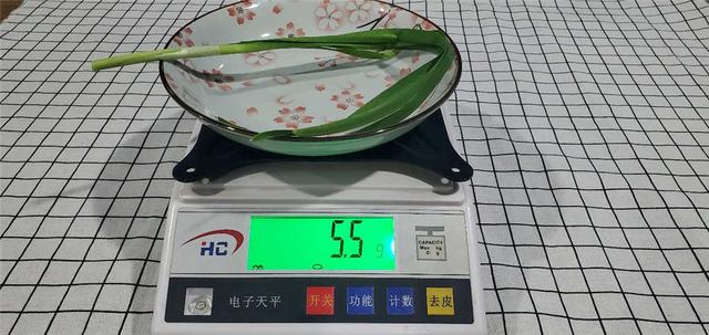 为了更精准地得到韭菜保鲜前后的效果对比,我们还用上了电子天平,以蔬菜水分的流失量来进行衡量,以下所有图片与前文中拍摄图片的时间保持对应。可以看到,冰箱内的这株韭菜重量只减少了0.1g,要不是韭菜上并没有残留水渍,甚至会让人以为24h的保鲜韭菜根本没有发生任何变化。