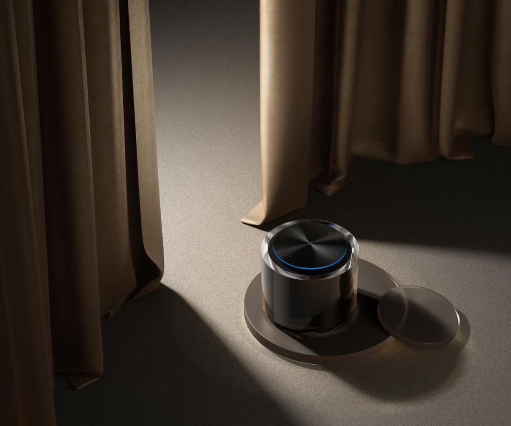 在外观方面,Xiaomi Sound也采用了与以往智能音箱产品截然不同的设计语言。它具有银黑两款配色,皆为环形透明机身材质,悬浮式触控顶盖与导音锥一体化设计,兼具颜值和功能性,360度全向上出音,在任意方位都能享受同样的好音质。