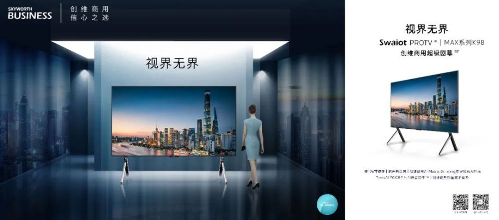 从整体上来说,Swaiot PROTV™|MAX系列K98不仅为商用大尺寸显示需求拓展更多选择空间,也能够进一步完善品牌布局,彰显创维商用以完善产品矩阵布局商显行业,争做合作伙伴信心之选的决心。