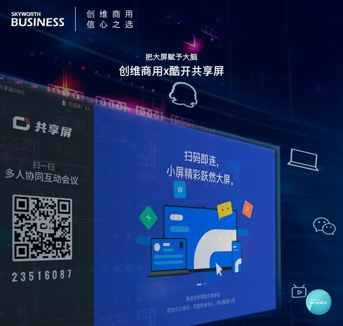针对商用活动中的内容的共享,Swaiot PROTV™|MAX系列K98通过酷开共享屏帮助实现跨屏连接,快速互联、便捷共享,为商务办公带来高效协同的一站式体验。开放的共享平台还能够带来无尽的资源,让画面不止在眼前,真正实现视界无界。